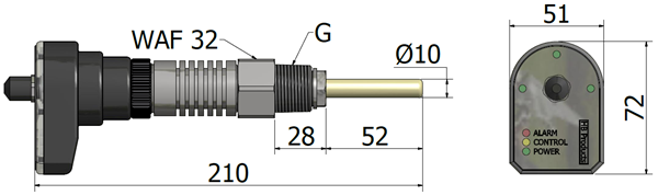 HBSR-SSR-1/IP is a level switch for detecting liquid in refrigeration systems. Typically, it is installed in/on the receiver, but it is also suited for installation in other locations where a level indication is required. The sensor's measurement principle makes it unique for these purposes, since the properties of the measurement principle as well as its special construction allows it to withstand high pressure and low refrigerant temperatures.