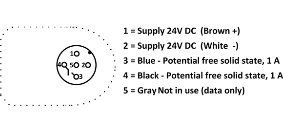 | Plug connections | M12, 5 pins - DIN 0627 |