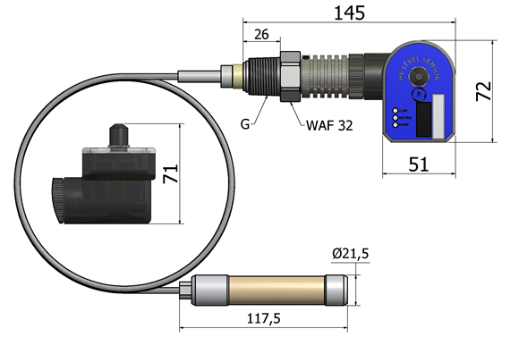 - Flexible sensor wire, which is adjustable to a length of 600 to 4000 mm.