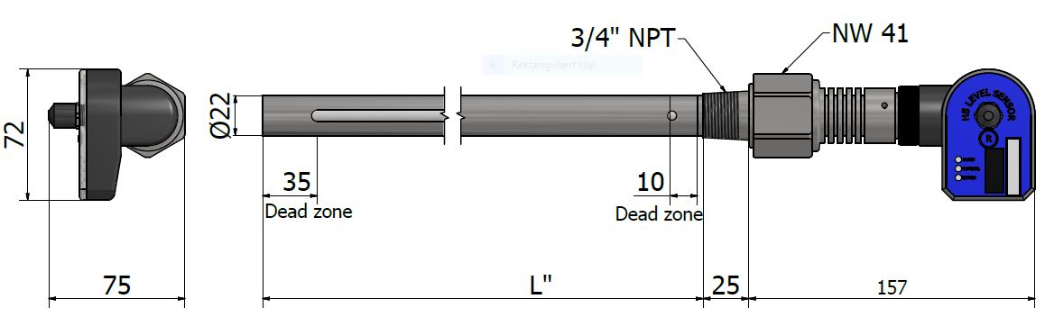 - Use only a HBLT-Wire sensor when you have it mounted in an inner guide-tube of e.g. DN25 as